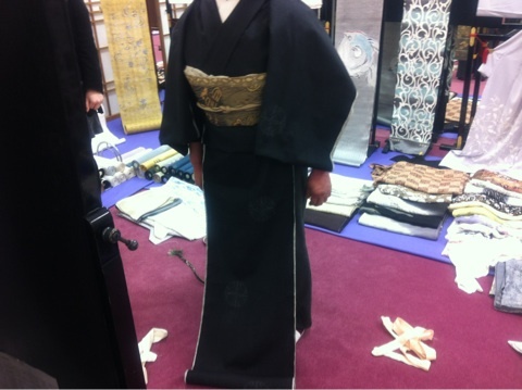 今回は、重要無形文化財の結城紬を紹介させていただきます。こちらの結城紬は、手紡ぎ、絣括り、地機で織られた結城紬です。柄も単なる亀甲の飛び柄でなく、かがみの柄を表現している商品です。色も鉄色で高級感があります。