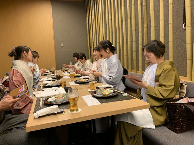 まず始めに皆様ご自慢の着物を着て東京プリンスホテルにある和食のお店「清水」さんで懐石料理を頂きました。皆さん、素敵な料理とお話で盛り上がり楽しんで頂きました。