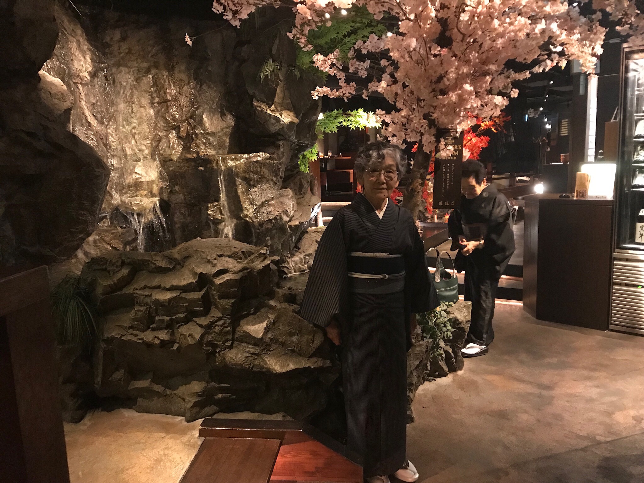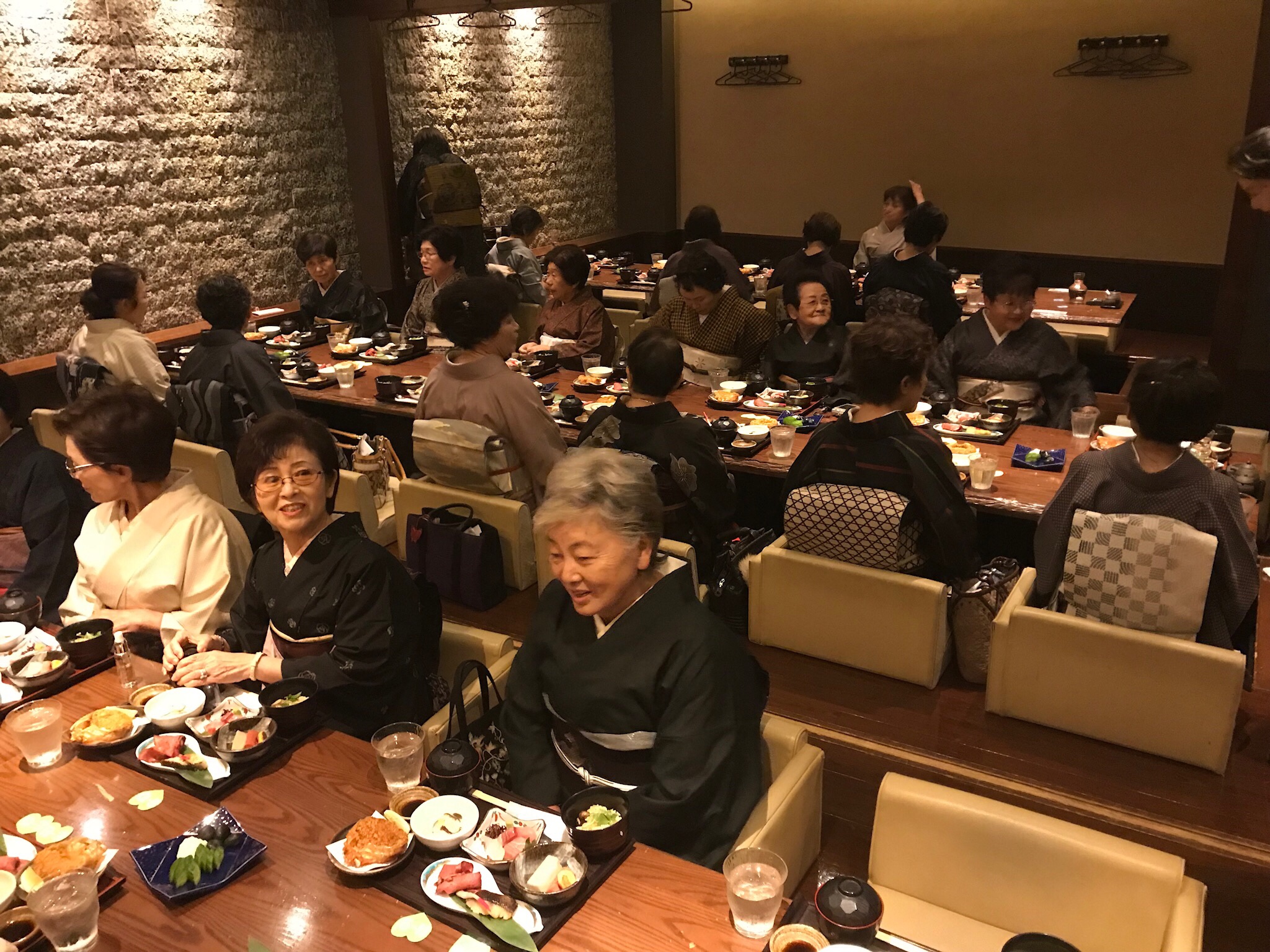 お店の前で記念撮影をしました。大勢の着物姿は圧巻でした。