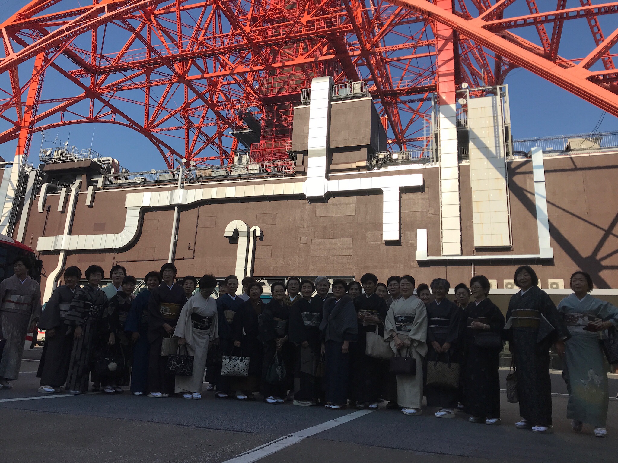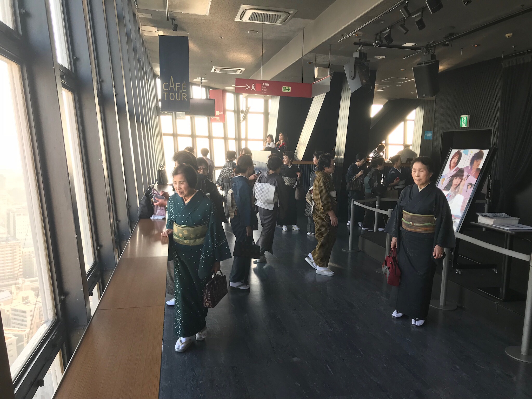 エレベーターに乗って展望台に向かうと着物姿のお客様で埋め尽くしてしまいました。