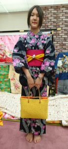 帯の色と合わせたかごバッグもとっても可愛い🍎🍎