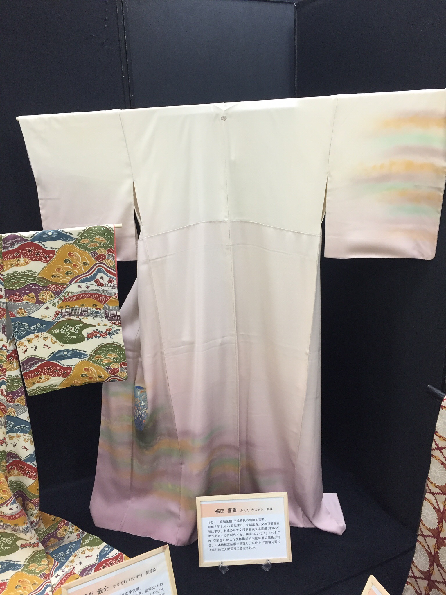 今回、人間国宝の木村雨山の加賀友禅などの貴重な作品を展示して取材を受けました。