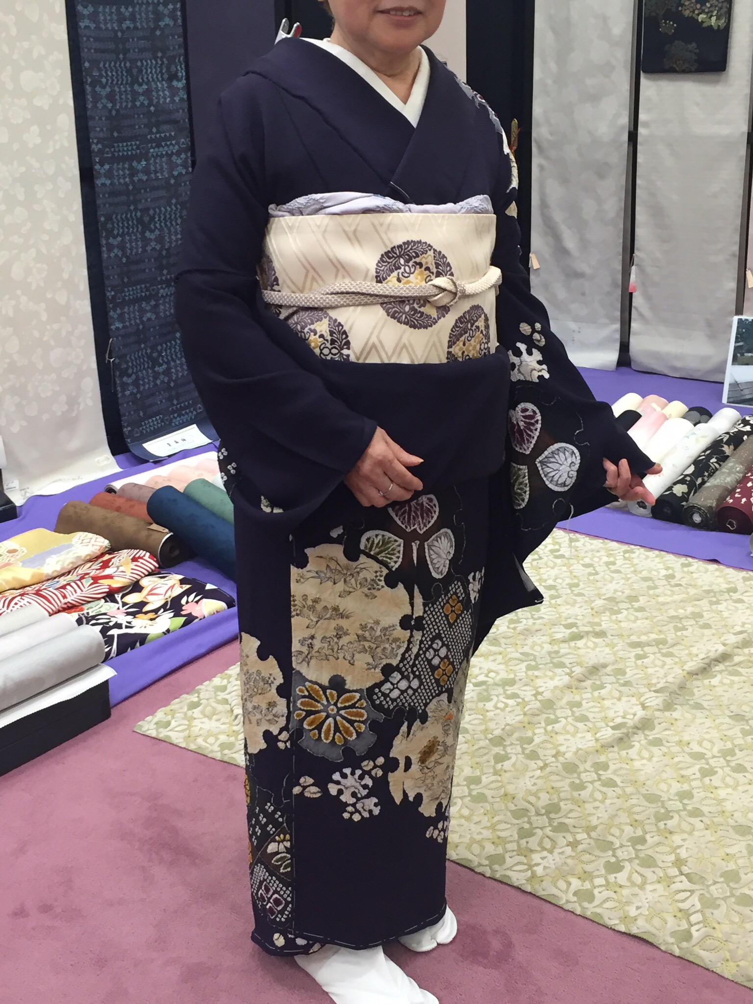 お召の着物や大柄の葵の柄の着尺、絞りの着物などお客様には着装もして頂きながら楽しんで頂きました。