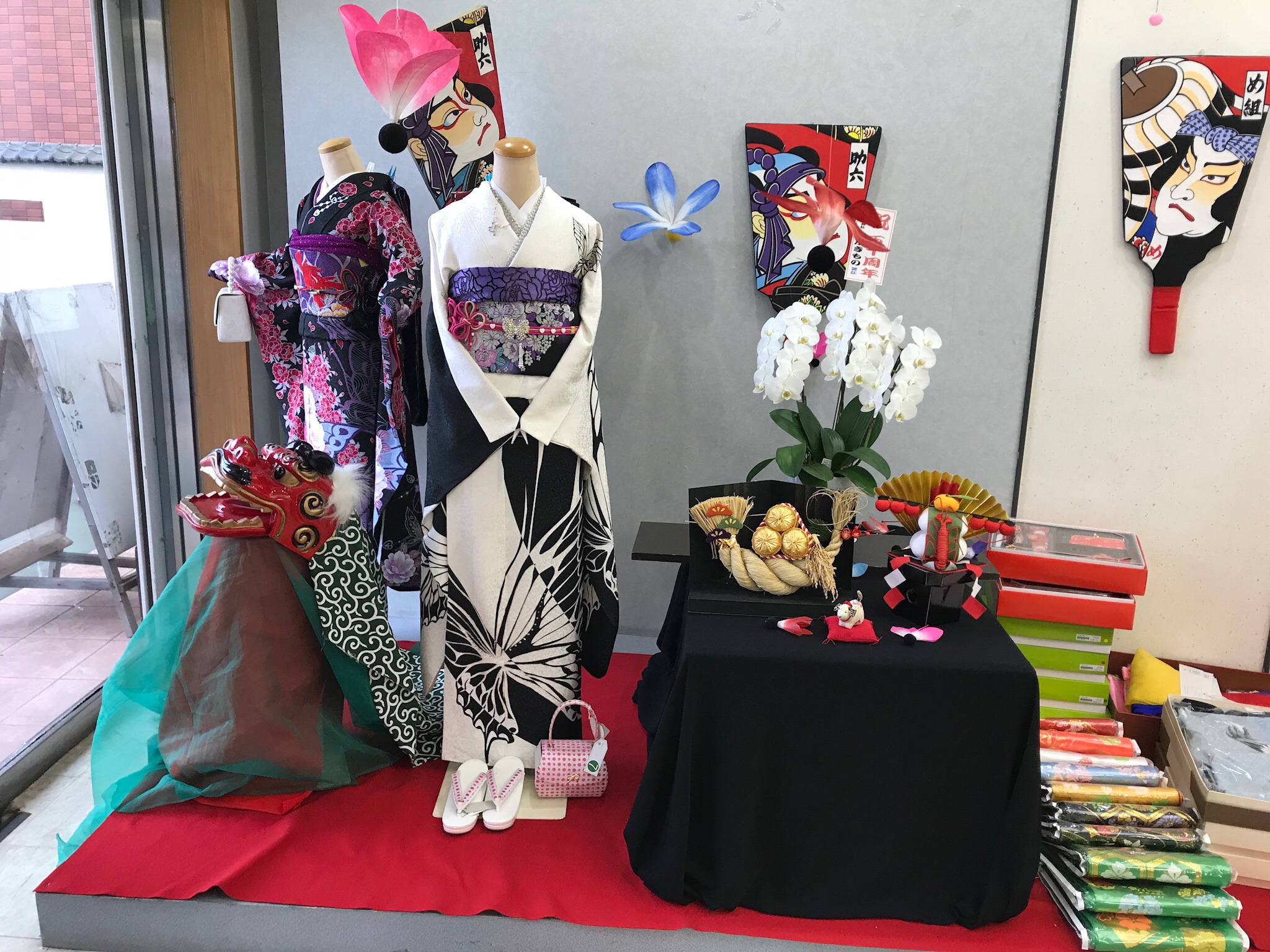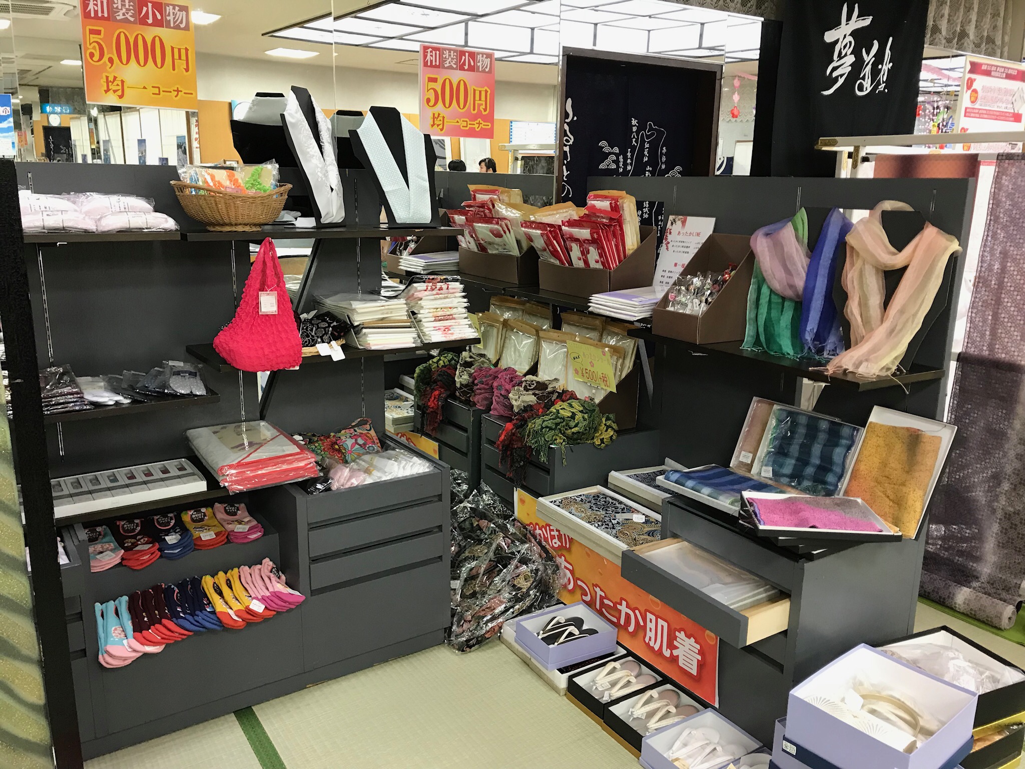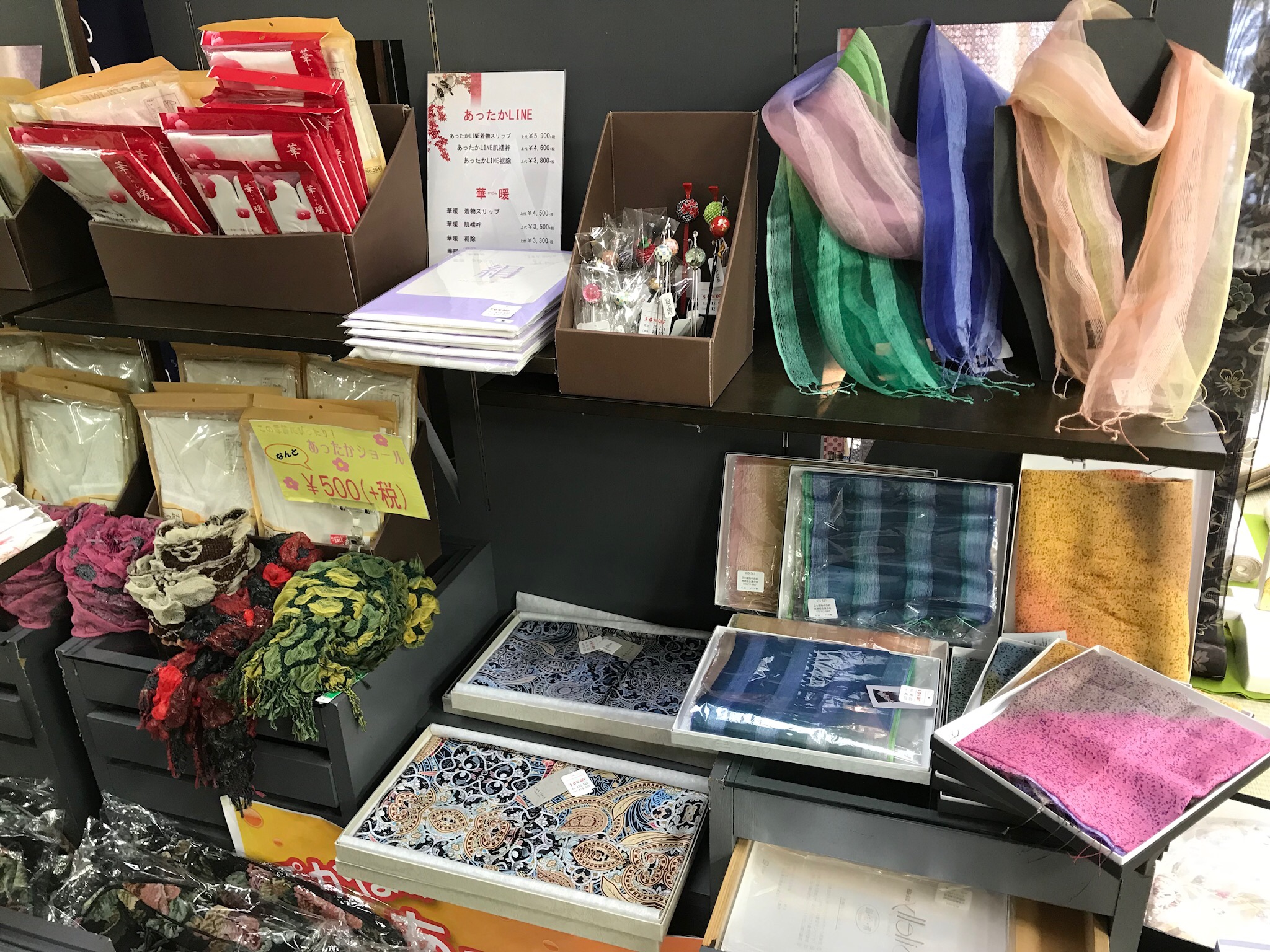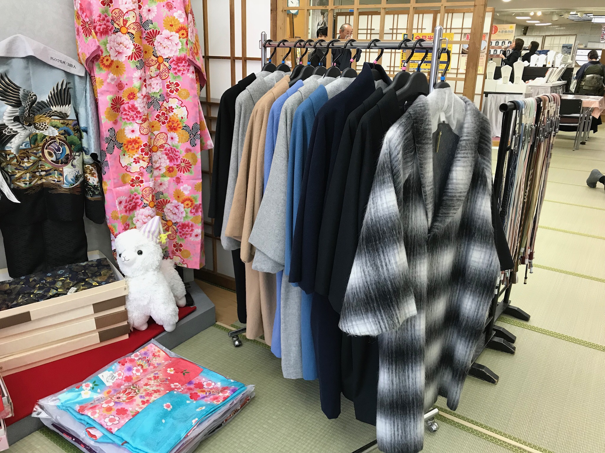 その他、小物の格安コーナーや今流行りの洋服でも着物でも使える防寒コートもご提案させて頂きました。