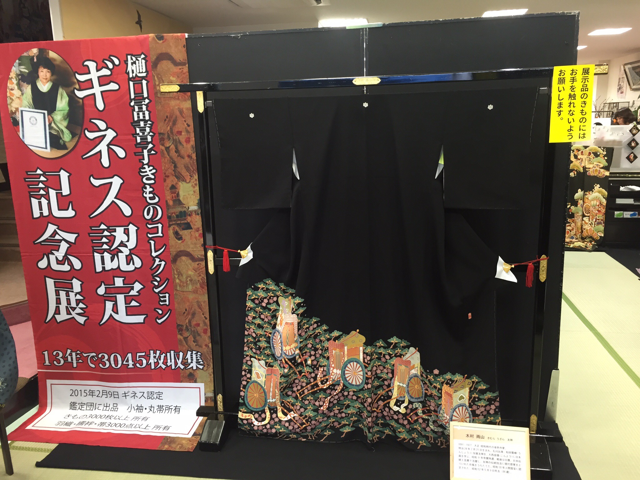 樋口冨貴子さんというきもの収集家でギネスに認定された方をお招きして、ご自身の人間国宝の着物を展示させて頂きました。