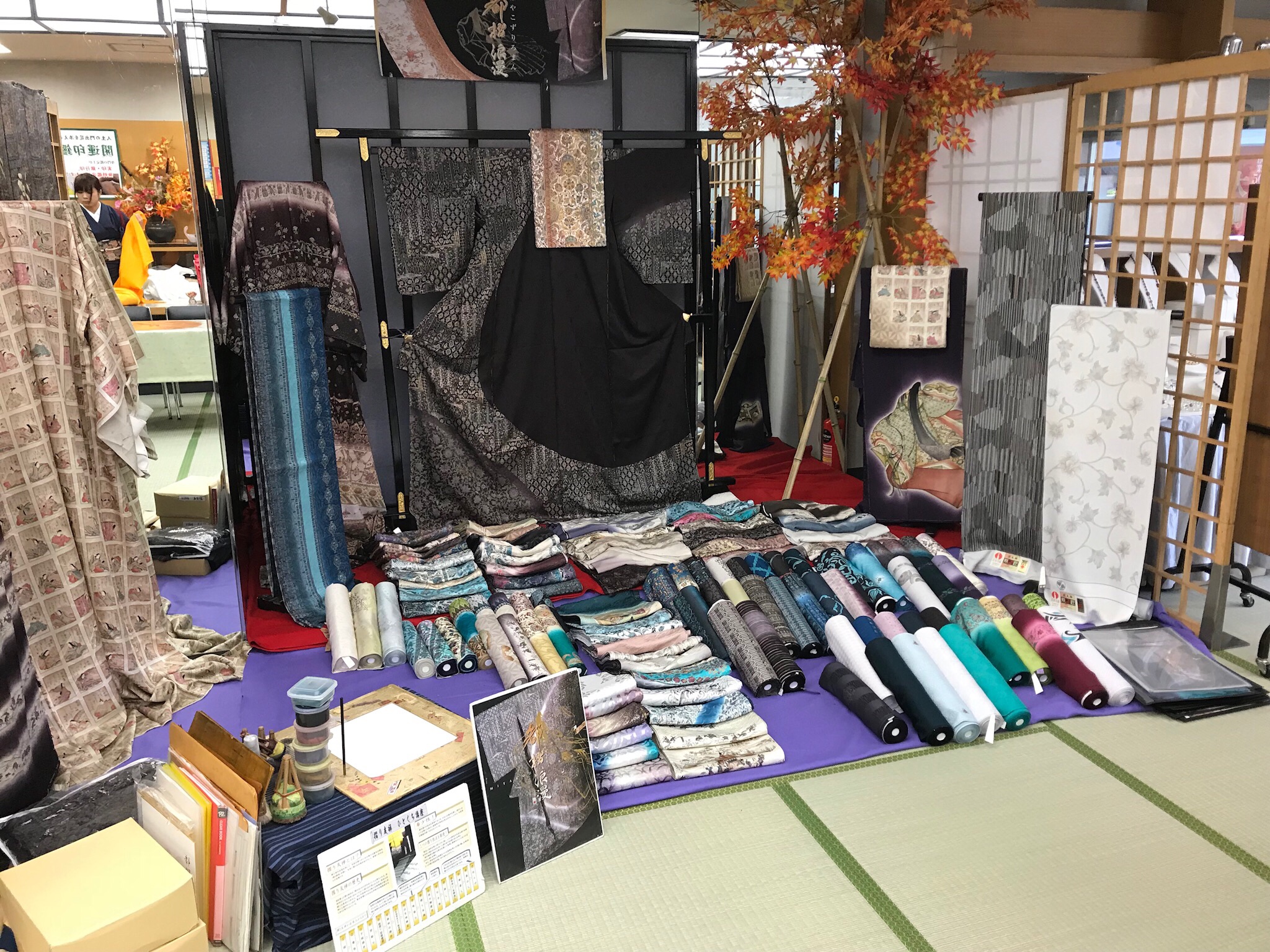 今回のメイン企画である「都摺浪漫(みやこずりろまん)」という摺り友禅を展示させて頂きました。