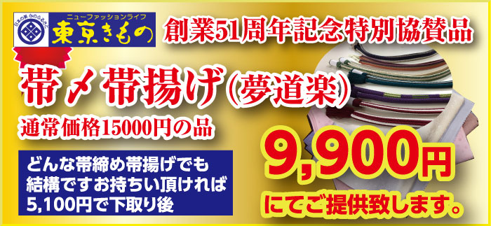 通常価格15,000円の夢道楽の帯締め、帯揚げを9,900円にてご提供いたします!