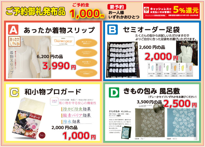 上記の商品、お好きな品をお1人様いずれかおひとつ、お得な金額でご購入いただけます。